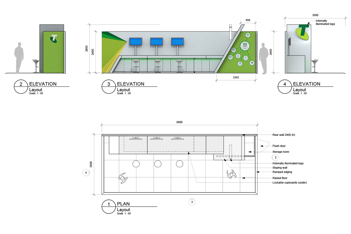 A small selection of the numerous Telstra exhibition stands I have designed for Creative D'Vision.